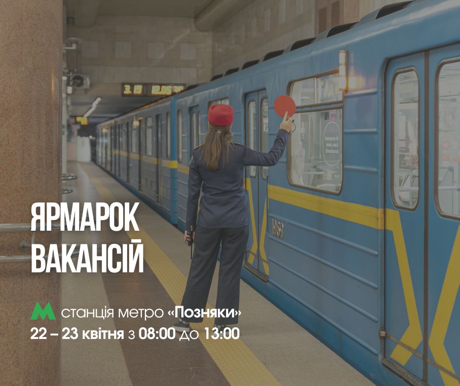 Протягом двох днів, 22 та 23 квітня, з 8:00 до 13:00 на станції метро «Позняки» фахівці з кадрової роботи метрополітену разом із Київським міським центром зайнятості консультуватимуть усіх охочих щодо працевлаштування. Про це повідомляють у КП «Київський метрополітен».