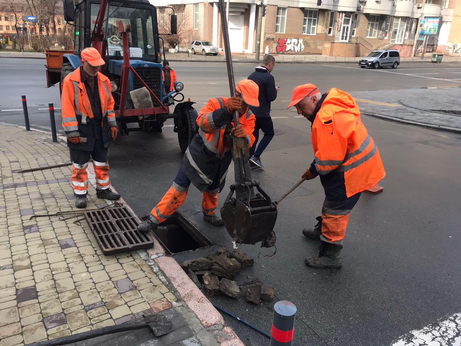 Зокрема, дорожники очищають наноси із зливоприймачів, відкачують воду у підземних пішохідних переходах, ремонтують ці переходи, здійснюють дрібний ремонт інфраструктурних об’єктів.