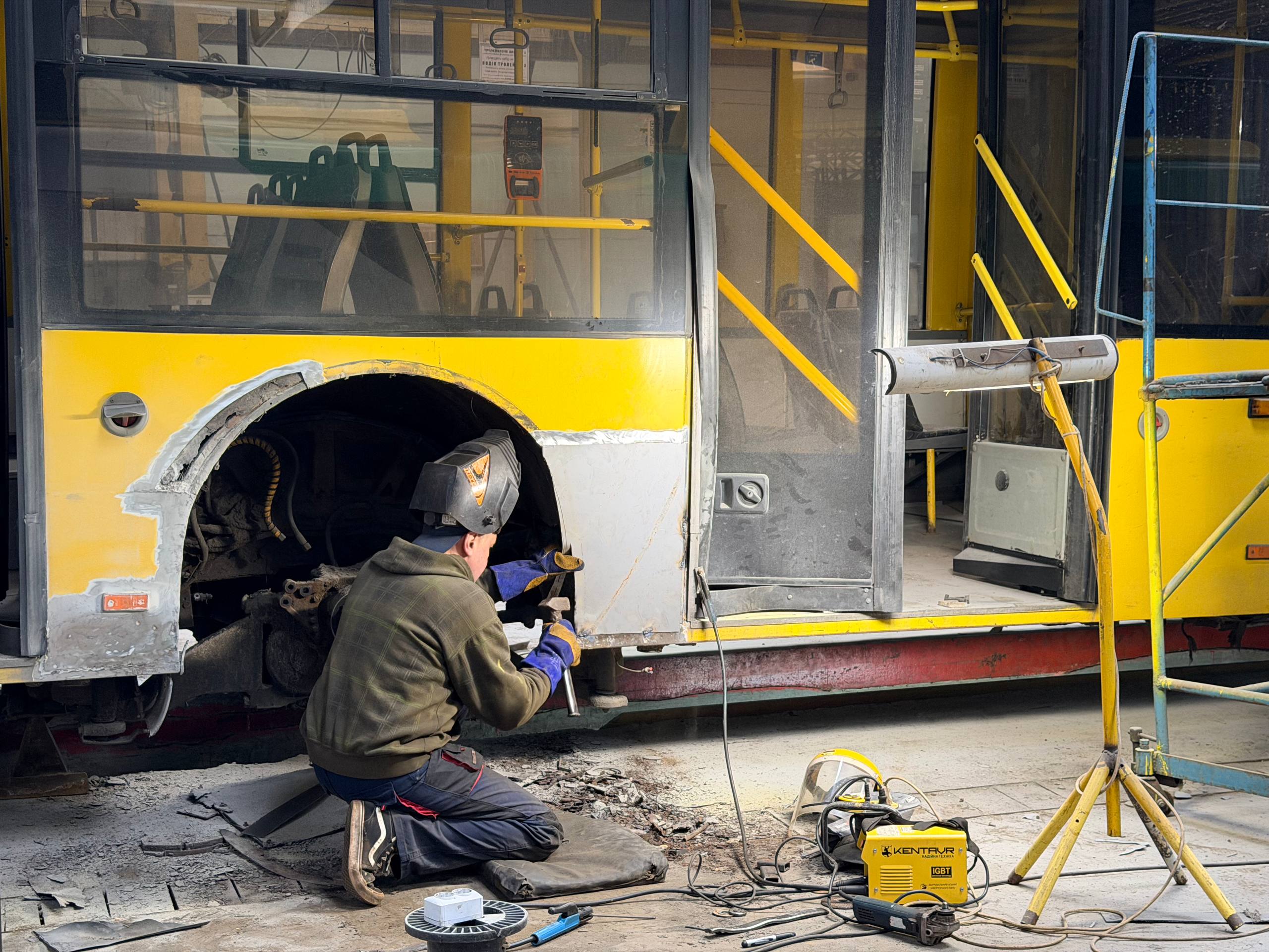 Наразі триває ремонт сидінь та устаткування салону, оновлення зовнішньої обшивки. Також фахівці ремонтують конструктивні елементи кузова, а саме: елементи передньої, середньої і задньої підвіски, дверні пороги та надколісні куполи.