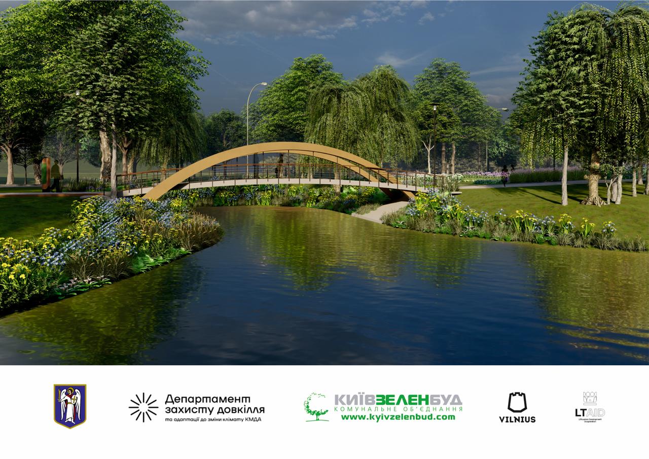 Парковий міст стане частиною оновлення південно-західної частини парку на вулиці Прирічній. Під час підготовки концепції змін провели три етапи відкритих громадських консультацій з мешканцями.