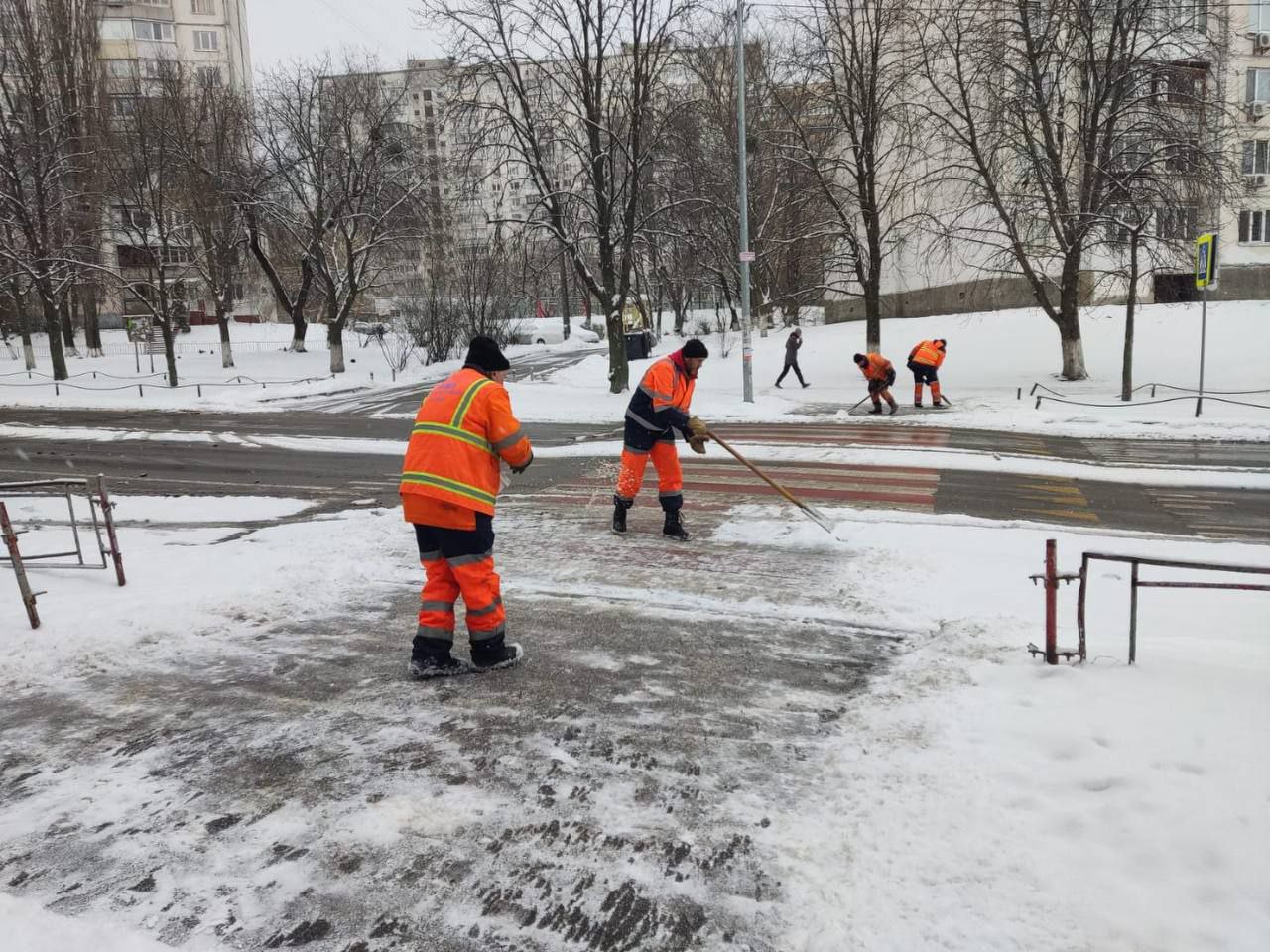 Першочергово обробляють протиожеледними засобами головні магістралі, мости, спуски і підйоми. Бригади з ручного прибирання очищають від снігу та обробляють протиожеледними матеріалами підходи до пішохідних переходів, тротуарів, зупинок громадського транспорту.