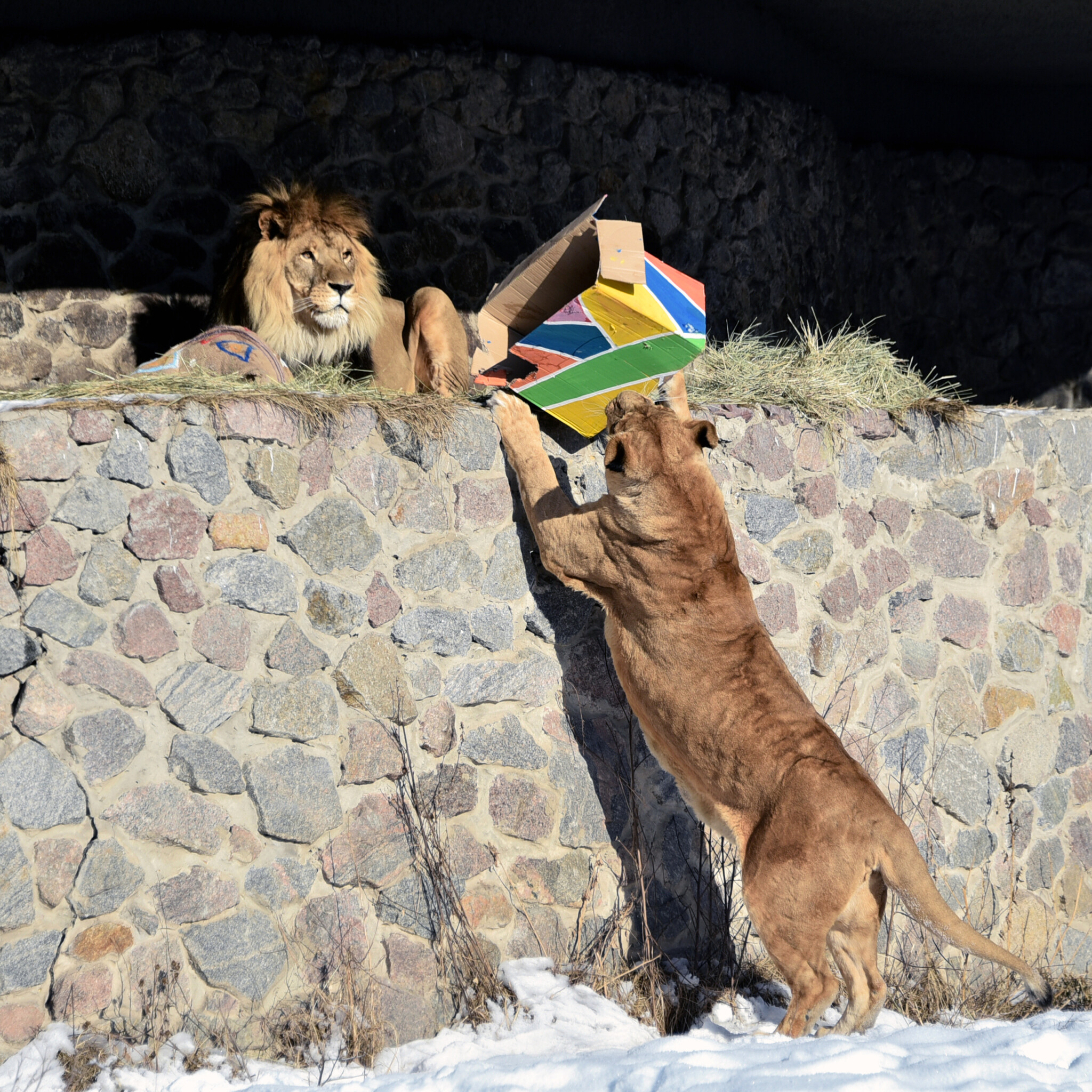 За майже два десятиліття життя в зоопарку леви чудово адаптувалися до місцевого клімату. Вони навіть наростили теплий підшерсток і з задоволенням гуляють при температурі до -10°С.