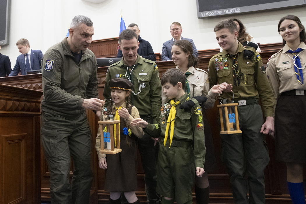 Представники національної скаутської організації «Пласт» традиційно, в кінці року, принесли до Київради благодатний Вифлеємський вогонь, який прибув до України з Австрії. Пластуни вручили його меру Києва Віталію Кличку.
