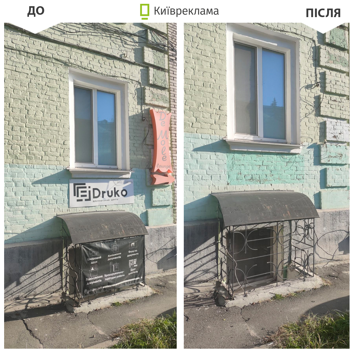 «Лише у листопаді демонтували 1 565 конструкцій та вивісок, розміщених з порушеннями. Найбільше – 733 одиниці – були на фасадах будівель. Ще 476 конструкцій прибрали з парканів. З опор та об’єктів транспорту демонтували 8 конструкцій, стільки ж – із дахів. Також прибрали 107 наземних конструкцій і 233 штендери, які часто перешкоджають пішоходам і створюють потенційно небезпечні ситуації», – прокоментувала директорка КП «Київреклама» Марина Декань.