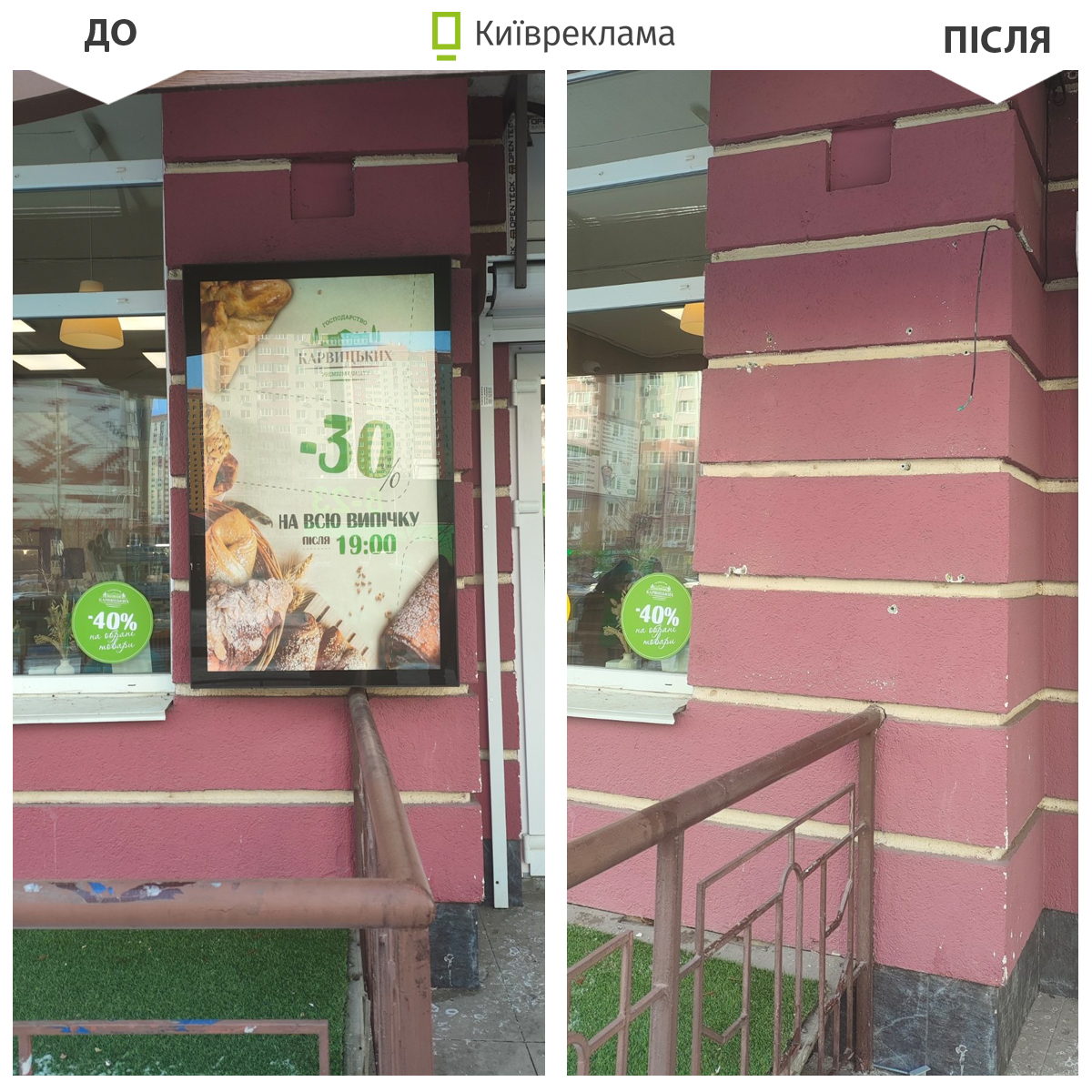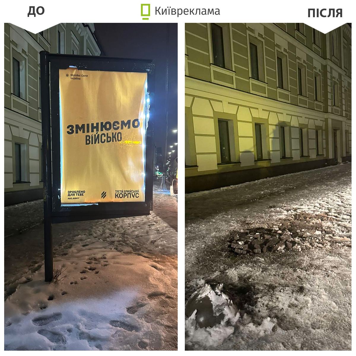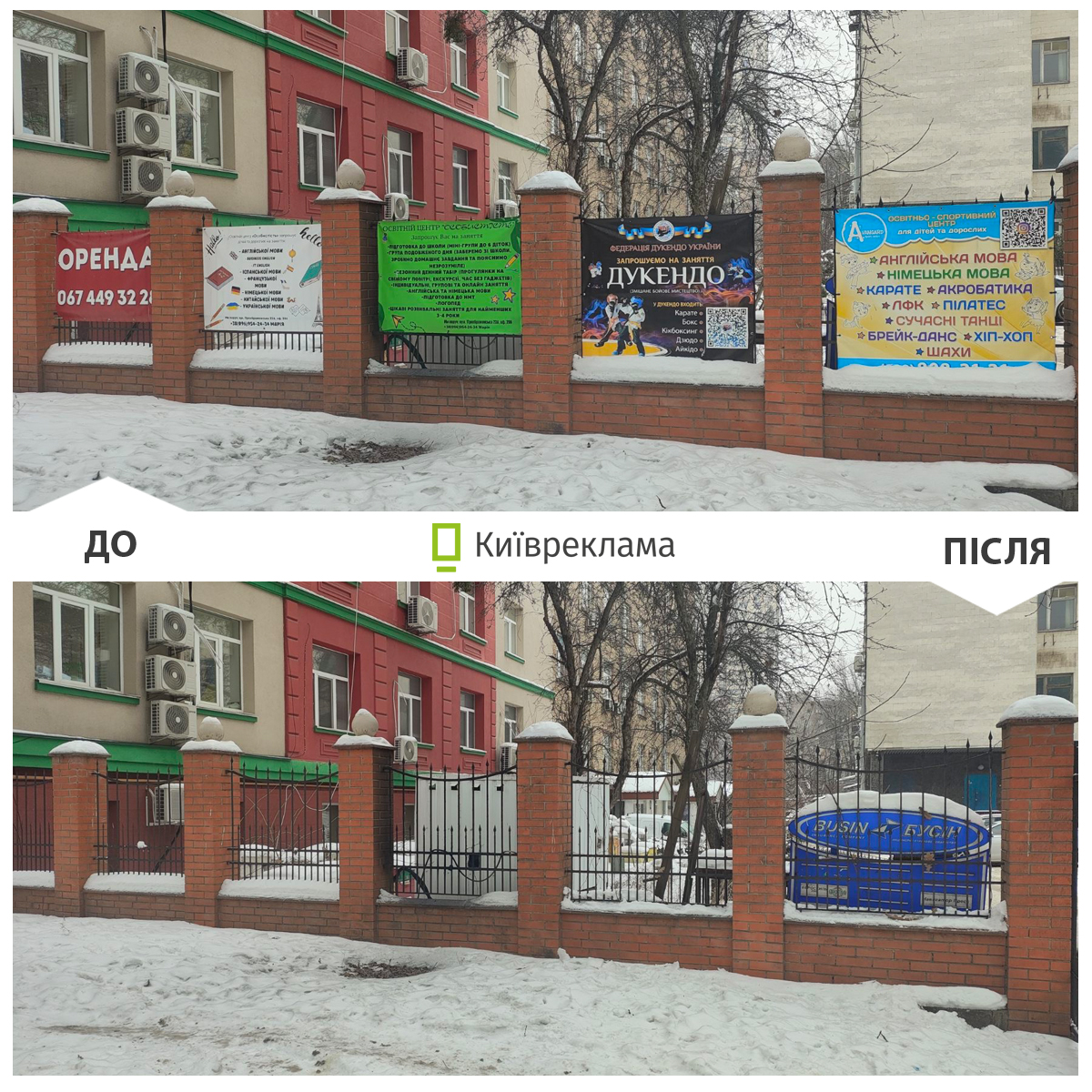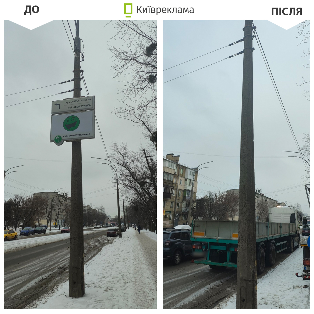 Попри складні погодні умови та періодичні вимкнення електроенергії демонтажні бригади КП «Київреклама» у січні продовжували системно очищувати міський простір від незаконно розміщеної реклами. Як повідомили в Управлінні з питань реклами КМДА, загалом упродовж місяця в столиці демонтували 1 117 рекламних конструкцій та вивісок, розміщених із порушенням вимог чинного законодавства та Правил благоустрою міста Києва.