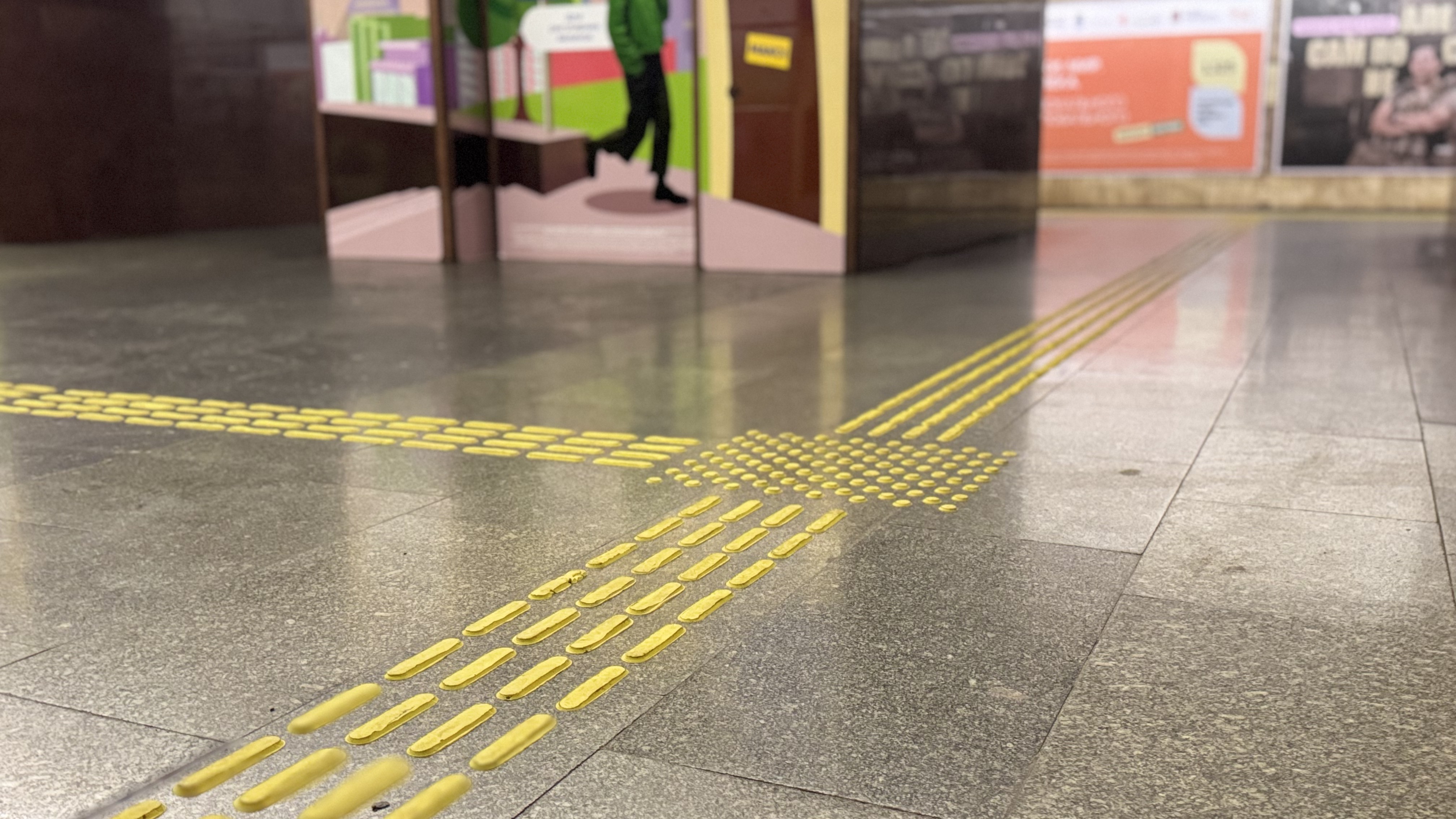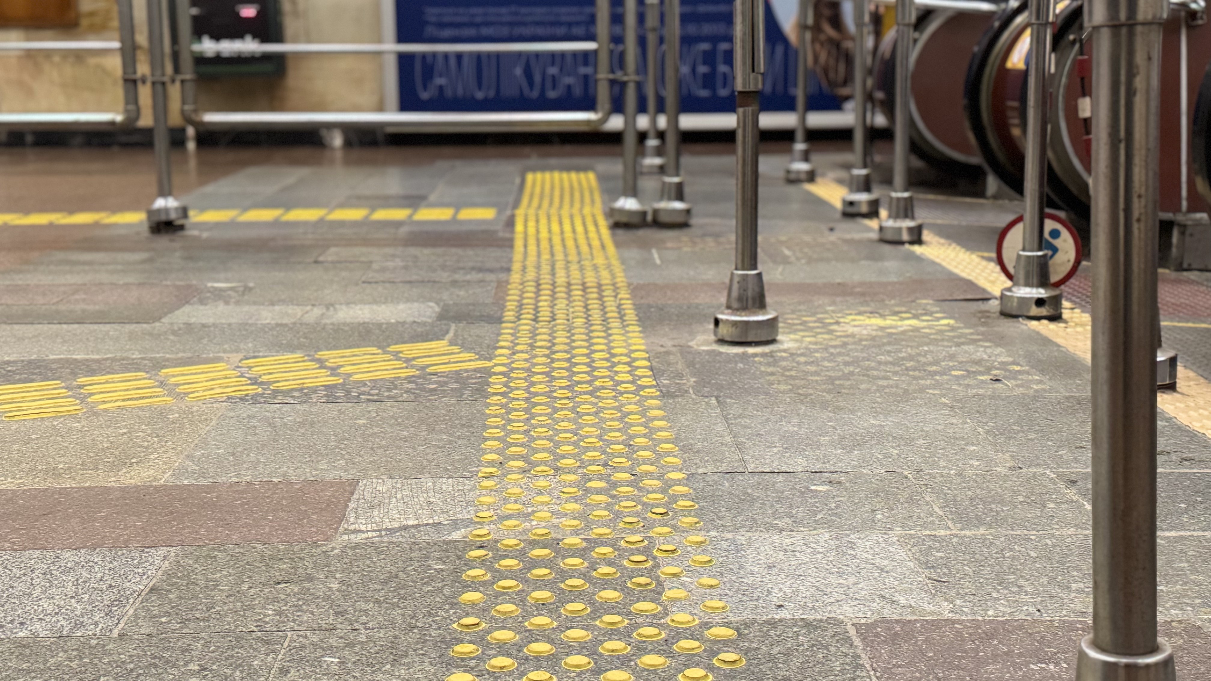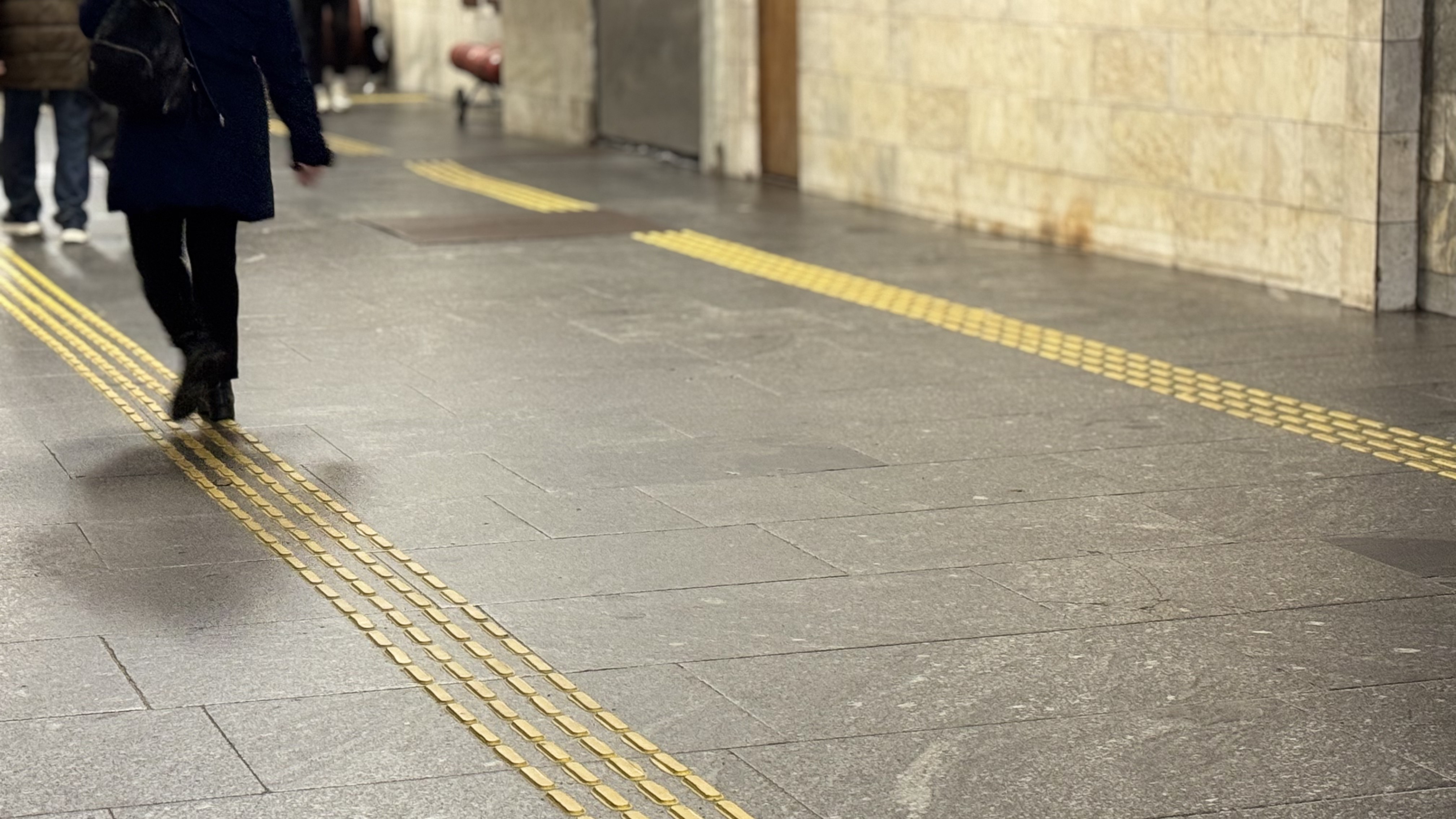 У столичному метро триває нанесення тактильних смуг, які допомагають краще та безпечніше орієнтуватися у просторі пасажирам із порушеннями зору. Наразі роботи вже завершили на станціях метро «Олімпійська», «Театральна» та «Палац спорту». Про це повідомили у КП «Київський метрополітен».