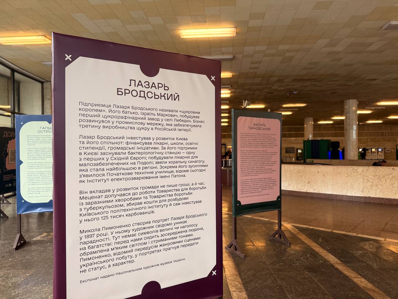 Мета виставки – розказати про українських меценатів, які в різні історичні періоди підтримували освіту, науку, культуру й мистецтво. Наприклад, Лазар Бродський не лише мав цукрорафінадний завод, а й інвестував у розвиток Києва: в лікарні, школи, освітні стипендії та громадські ініціативи.