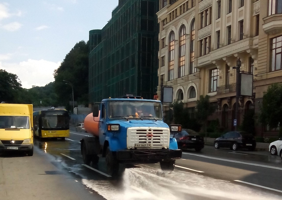 У зв’язку зі спекотною погодою у столиці комунальні підприємства корпорації «Київавтодор» посилили полив доріг. Так, щоденно у дві зміни в цілодобовому режимі на дорогах Києва працюють понад 50 поливальних машин. Лише протягом минулої доби для поливу доріг було використано близько 2000 куб. м води.