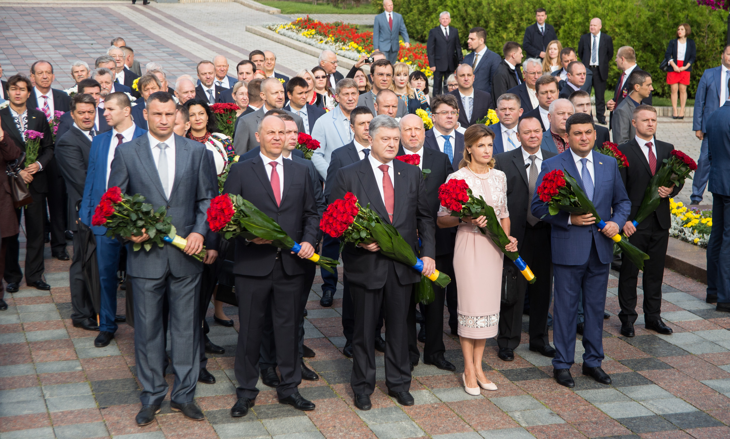 Київській міський голова Віталій Кличко разом із Президентом України Петром Порошенком та іншими посадовцями з нагоди Дня Незалежності взяв участь у церемонії покладання квітів до пам’ятників Тарасу Шевченку та Михайлу Грушевському.