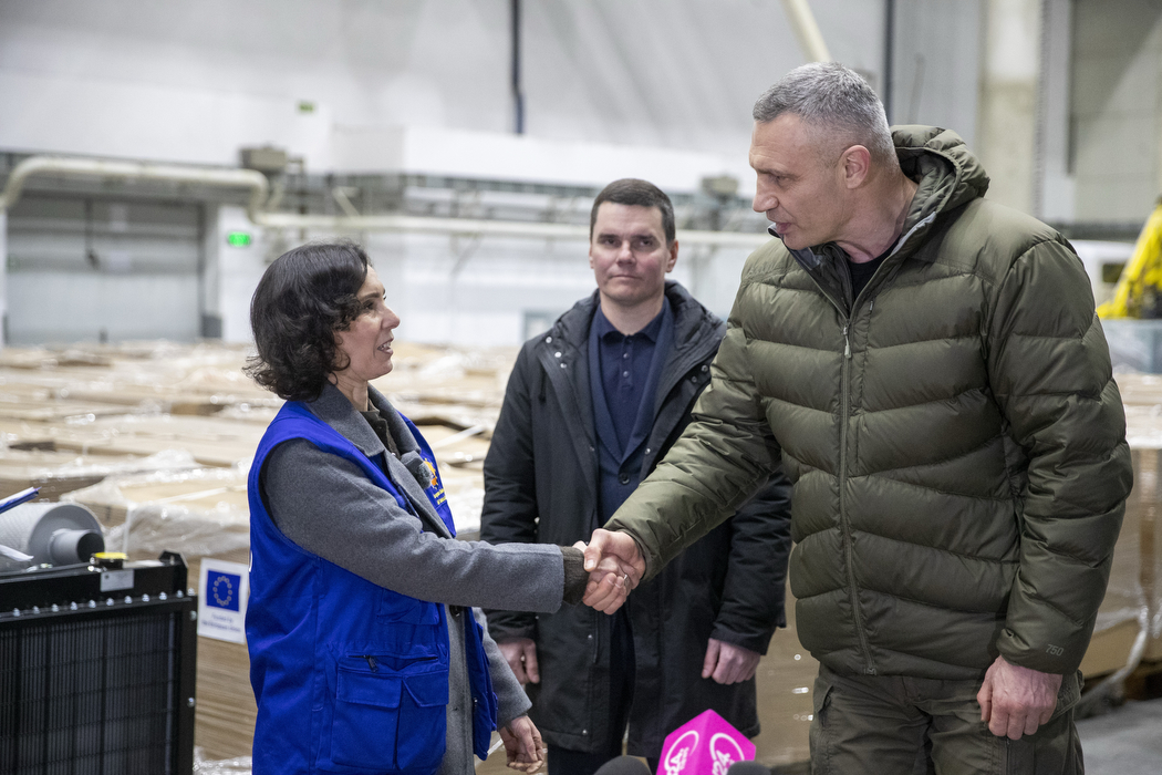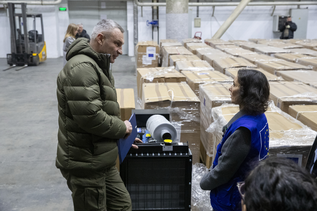 Київ отримав від Євросоюзу ще 323 генератори, які використовуватимуть для живлення теплопунктів у будинках, де є така можливість. Їх столиці передала комісарка ЄС з питань готовності, управління кризовими ситуаціями та рівності Аджа Лябіб. Загалом від ЄС до Києва надійшли 500 джерел живлення. Про це мер міста Віталій Кличко повідомив у своєму Telegram-каналі.