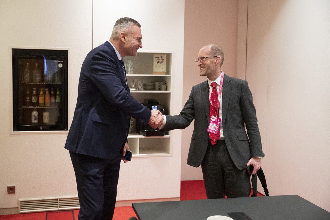 Мер Києва Віталій Кличко під час Інвестиційного форуму міста Києва зустрівся з керуючим директором Групи зі сталого розвитку інфраструктури ЄБРР Гаррі Бойд-Карпентером та Асоційованим директором, старшим банкіром Групи сталої інфраструктури Денисом Гайовим. А також з віцепрезиденткою з питань взаємодії з урядами та публічної політики в Європі компанії Google Анетте Кребер-Ріель. Про це Віталій Кличко повідомив у своєму Telegram-каналі.