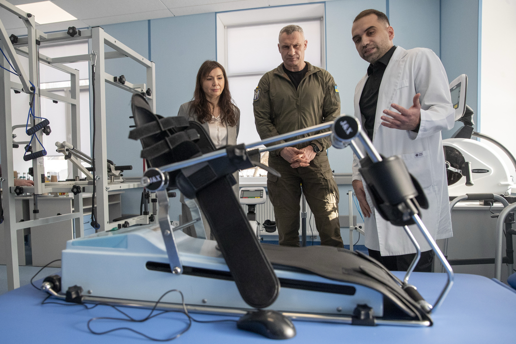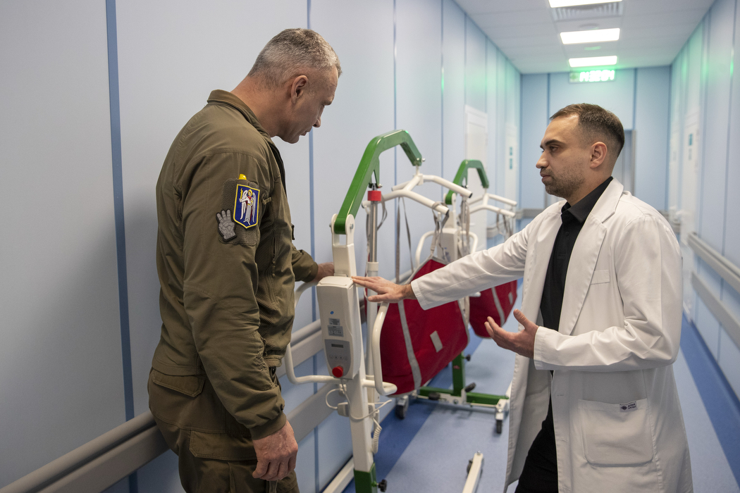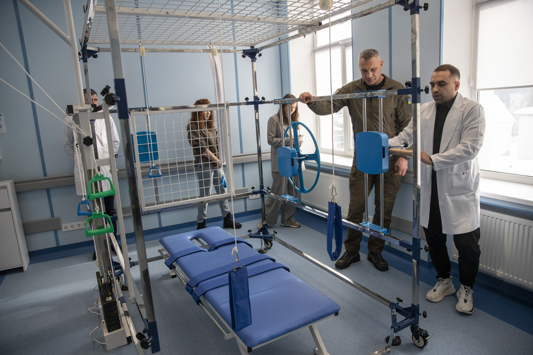 «У медзакладі триває системна трансформація – перехід до сучасної моделі надання медичної допомоги, де лікування і відновлення є єдиним безперервним процесом. Відділення неврології та фізичної реабілітації розраховане на 30 ліжок. Зростання потреб у якісній медичній реабілітації робить цей напрям одним із ключових для сучасної лікарні. Відділення орієнтоване на пацієнтів, які потребують лікування та реабілітації після інсультів, черепно-мозкових травм та контузій, травм хребта та оперативних втручань, із захворюваннями периферичної нервової системи. У відділенні дві зали реабілітації, які облаштовані спеціалізованими тренажерами та сучасним реабілітаційним обладнанням», – розповів Віталій Кличко.