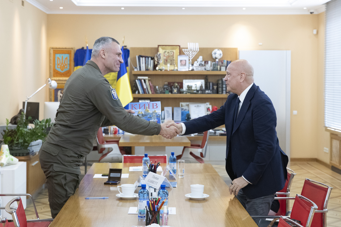 Мер Києва Віталій Кличко зустрівся у столичній мерії з Генеральним секретарем глобальної міжурядової коаліції «Спільнота демократій» Томом Гаретом, який відвідав українську столицю з ознайомчою місією. Про це Віталій Кличко повідомив у своєму Telegram-каналі.