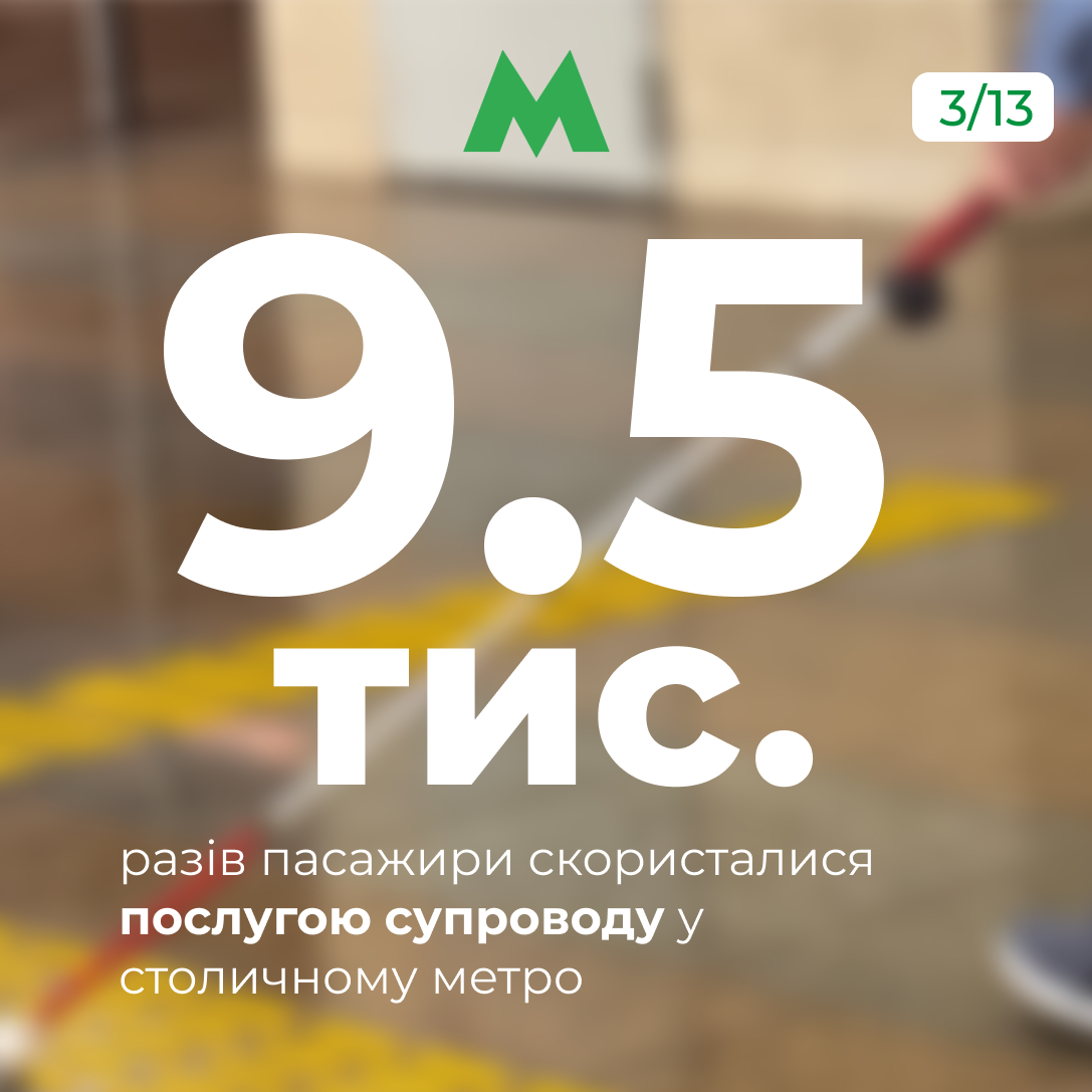 За цей період фахівці метрополітену організували більше ніж 9 500 супроводів пасажирів із числа маломобільних груп. Цю послугу можна замовити за номерами (044) 238-55-11 або 050-448-91-71. У підприємстві рекомендують звертатися щонайменше за годину до запланованого часу.