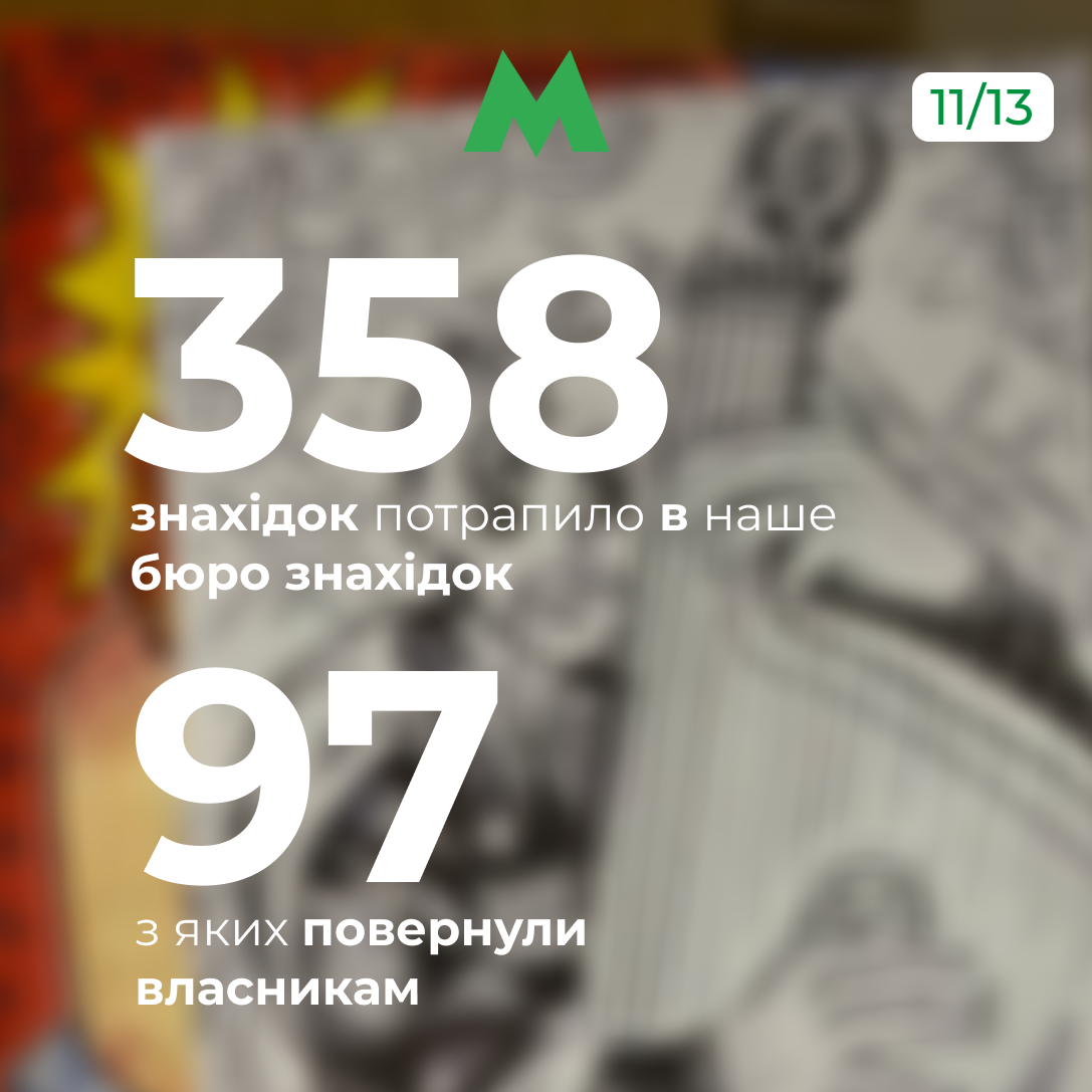 Торік бюро знахідок «Київського метрополітену» отримало й чимало згуб, а саме – 358. Майже третину з них – 97 – успішно повернули власникам.