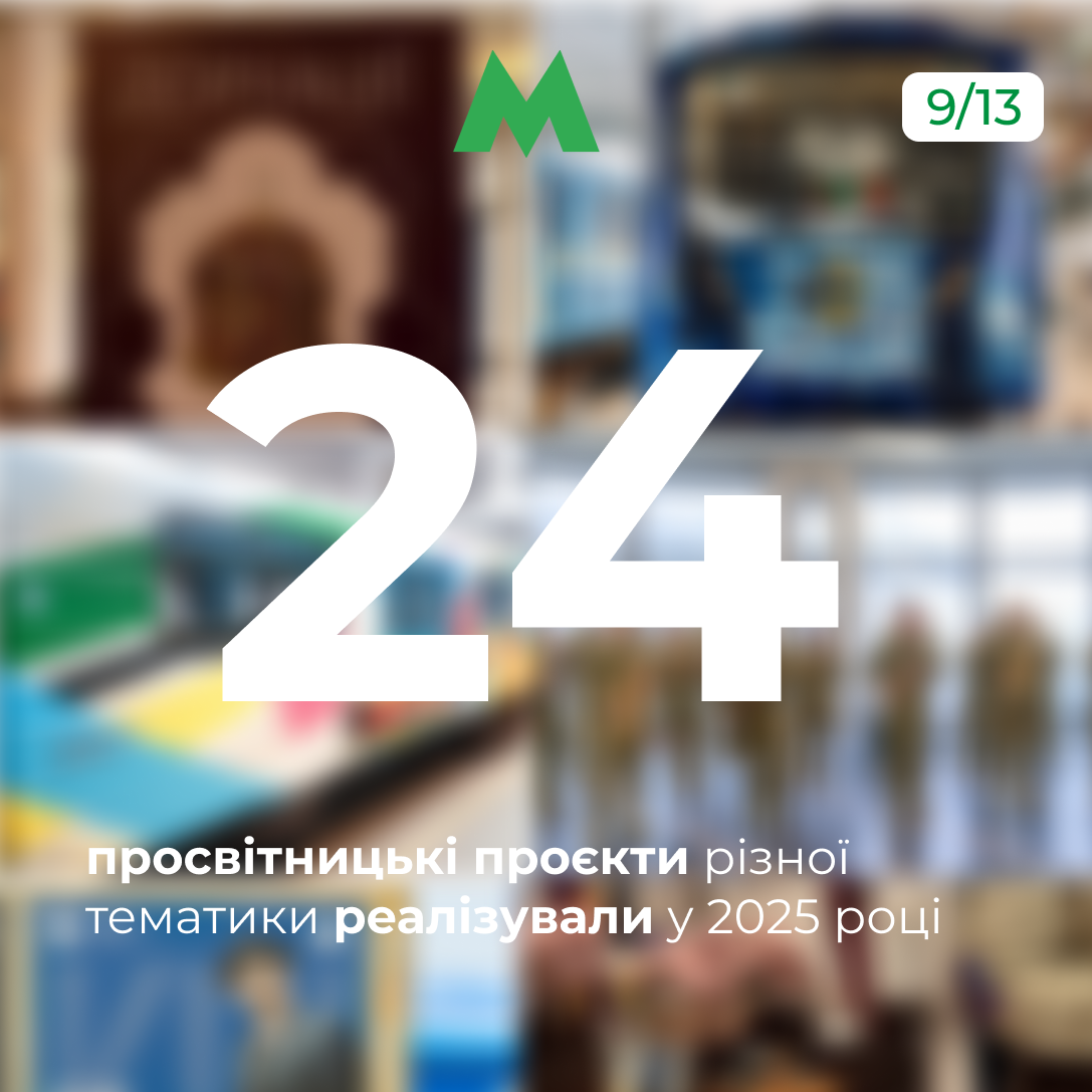 Соціальна складова лишається важливою частиною роботи підприємства. У 2025 році в «Київському метрополітені» реалізували 24 просвітницькі проєкти в партнерстві з різними організаціями, спільнотами та ініціативами. Традиційно найпоширеніші теми – історичні, мистецькі та патріотичні, які спрямовані на підтримку традицій і привернення уваги до важливих суспільних питань.