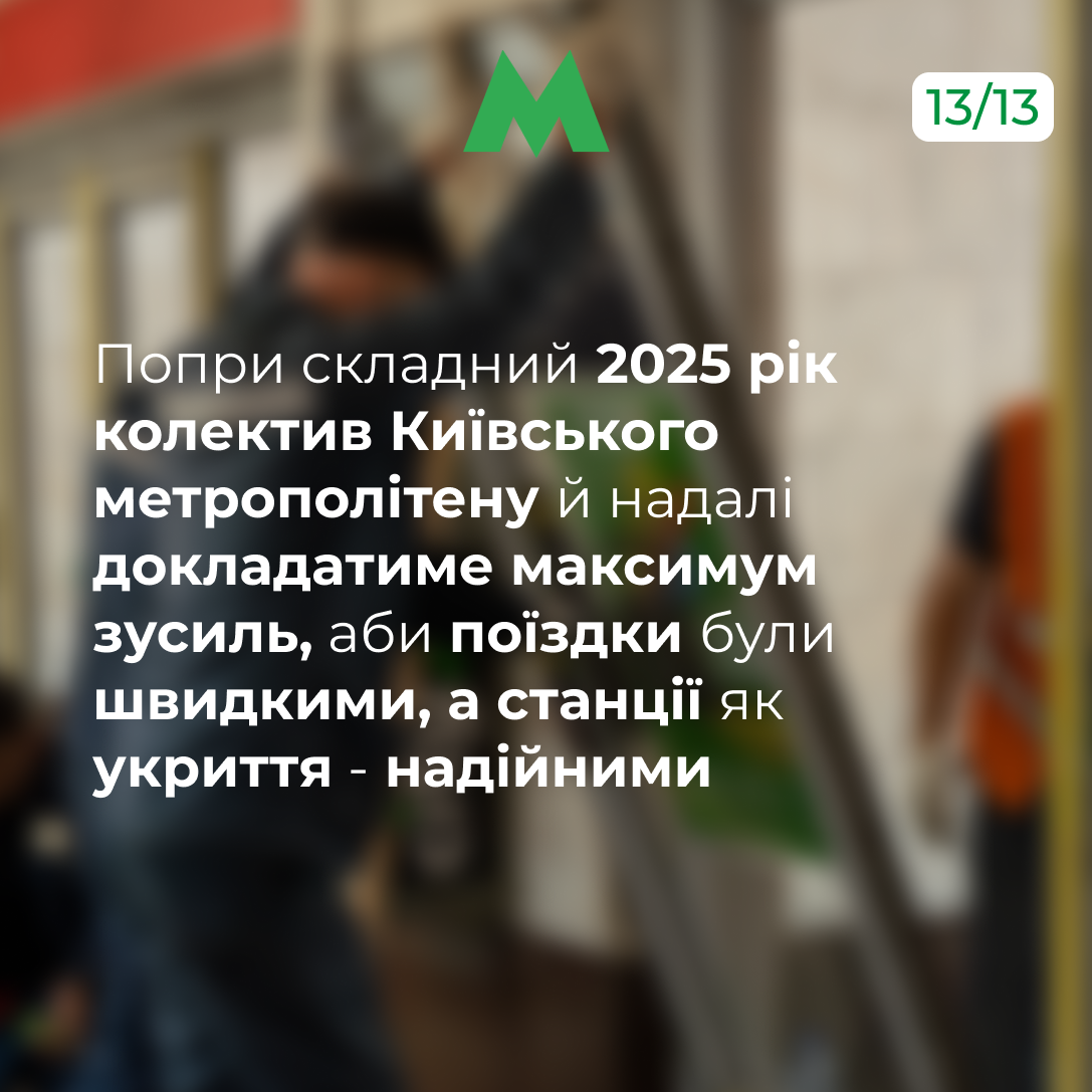 Перша жінка-машиністка, майже 250 млн перевезених пасажирів і 970 тис. осіб в укриттях – підсумки роботи київського метро у 2025 році (+інфографіки)