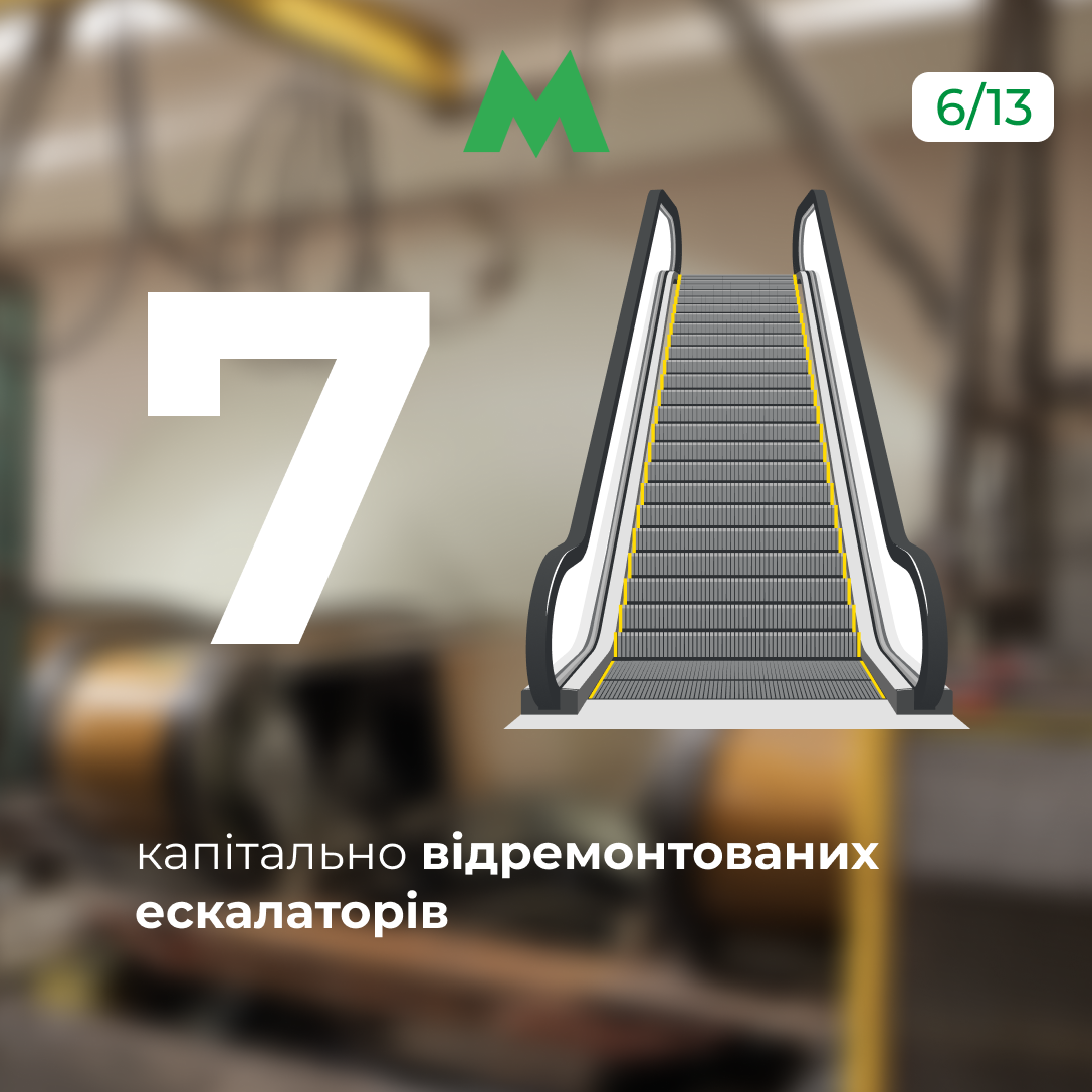У 2025 році проходили планові почергові капітальні ремонти 7 ескалаторів, зокрема на станціях «Берестейська», «Либідська», «Хрещатик» і «Палац «Україна».